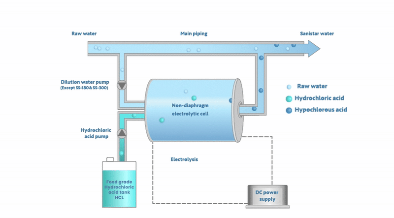 • Compact and efficient: Produces up to 180 liters per hour of Sanistar Water.